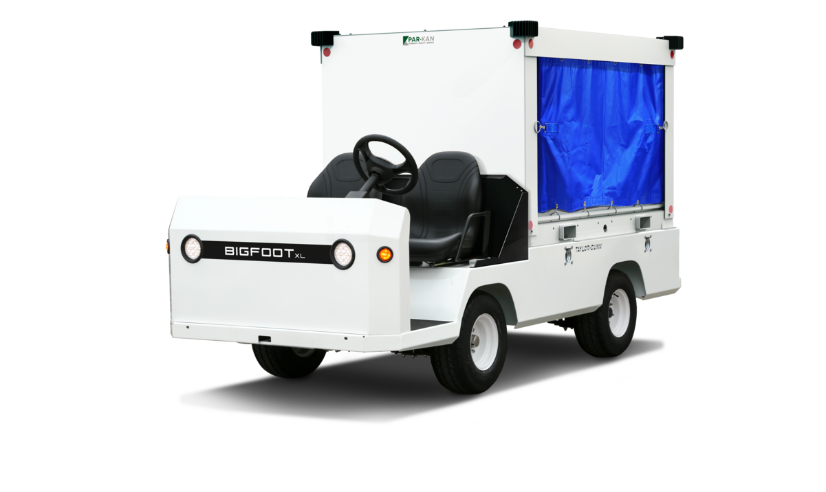 The Taylor-Dunn Bigfoot XL airport baggage truck moves passengers’ luggage quickly and reliably between aircraft and terminal carousels. With an 85-cubic-foot cargo bed and 10,000-lb. towing capacity, it handles multiple bag cart trains per turn. As a result, it reduces the number of runs required per flight and keeps ground crews moving. Additionally, zero tailpipe emissions keep ramp air clean for crews working at close range.